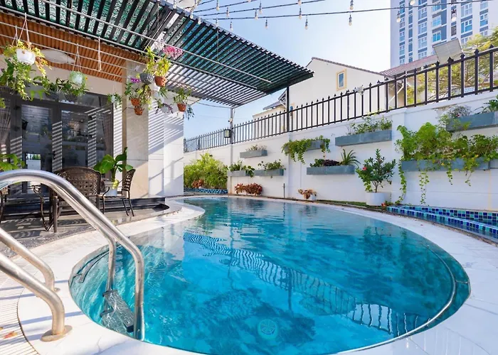 Villa 9 Kim Ngan - Bida - Karaoke - Di Bo Ra Bien Vung Tau is located 3.5 km from the Tao Phung Park and offers guests to relax by a rooftop swimming pool with bar service. Featuring a terrace, the 7-bedroom beachfront villa is situated about 25 minutes' walk from Tinh Xa Ngoc Cat.